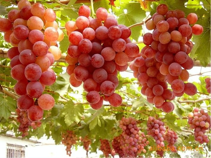 Crimson Seedless is a high-quality, late-season, seedless red grape variety. It is known for its crisp texture, balanced sweetness, and long shelf life. The berries are medium to large, with an elongated oval shape and a light to dark red color. The skin is medium-thick, making it resistant to bruising and ideal for transportation.